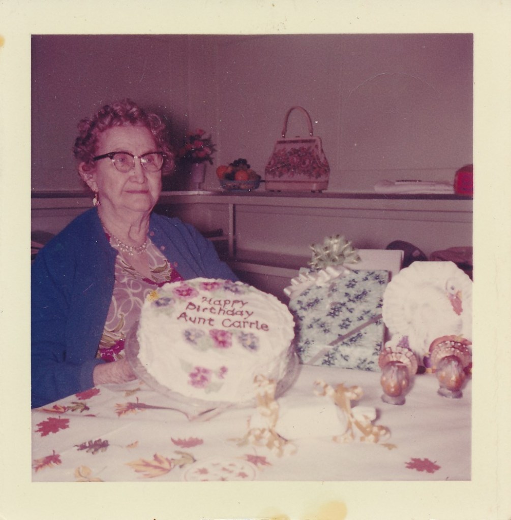 I remember visiting Aunt Carrie when she lived in a trailer. I think it was in Atlanta, Indiana. I remember a couple of stories from when she visited us in Ferndale. Mom fried some bacon and was going to throw away the bacon grease. This horrified Aunt Carrie. Bacon grease was used for cooking instead of store bought oil. A few months after Aunt Carrie left, Mom noticed a smell in the kitchen. She searched the cupboards and found a juice glass full of bacon grease the Aunt Carrie had stashed.
